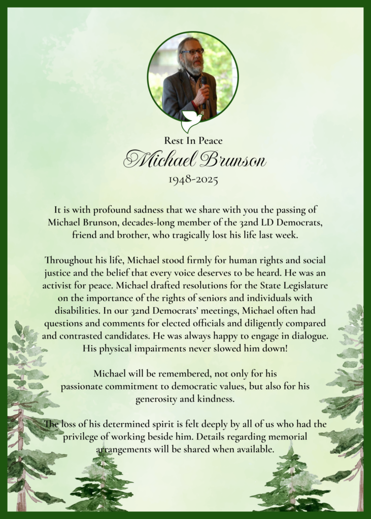 Endorsed by the 32nd LD Democrats.