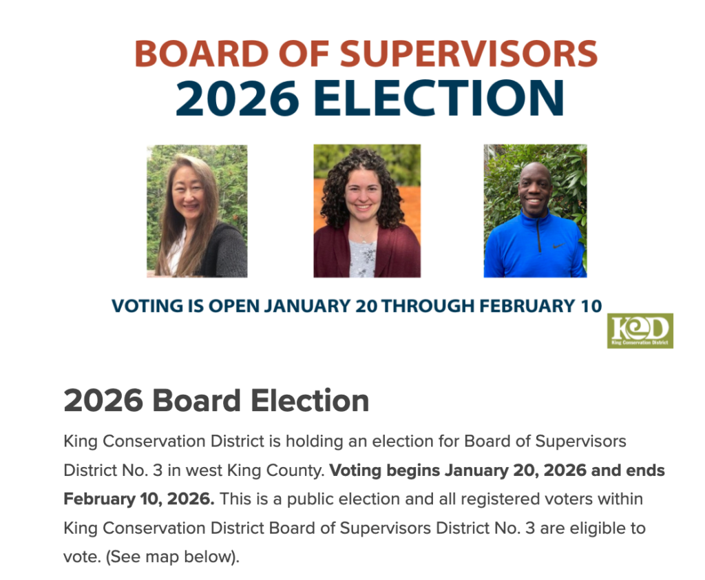 In King County, voting is underway for the King County Conservation District. Voting is online only for this race.