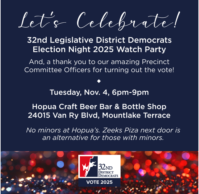 Sign up to represent the 32nd district at the State Convention this year. Right now, only 9 people from the 32nd have filed – and we have the opportunity to send 40 people to Spokane (or participate virtually). The Convention is June 19-21.